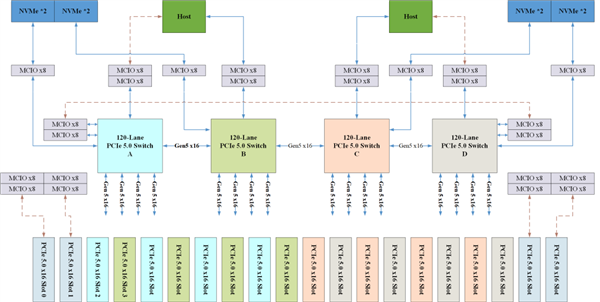 PCIe5互换芯片做为AI新基建的“神经中枢”,承担着CPU、GPU、NIC及SSD等设备间高速数据传输和互换,打破“内存墙”和“互联墙”的主要。